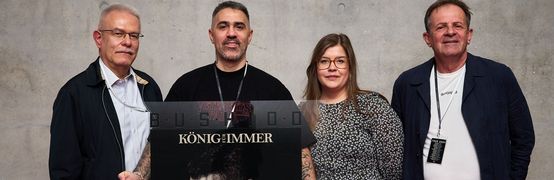 In the photo from left to right: Hans-Peter Haag (Managing Director Music Circus Concertbüro GmbH & Co. KG), Bushido, Luisa Klein (Project Manager Music Circus Concertbüro) and Burghard Zahlmann (Managing Director Concertbüro Zahlmann)