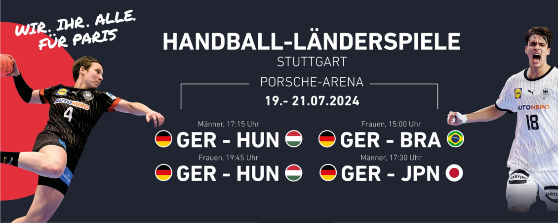 To prepare for this highlight, the German Handball Federation is organizing a three-nation tournament for both national teams in the Porsche Arena on the “Road to Paris” from Friday, 19 to Sunday, 21 July 2024. The two German teams will be joined by top-class guests. The men will play Hungary on Friday, July 19, at 5:15 p.m. and Japan on Sunday, July 21, at 5:30 p.m. The German women's handball team will first face Hungary on Friday, July 19, at 7:45 p.m. before playing the Pan American champions from Brazil at 3 p.m. on Sunday, July 21, 2024, in the Porsche Arena. So this summer will definitely be hot.