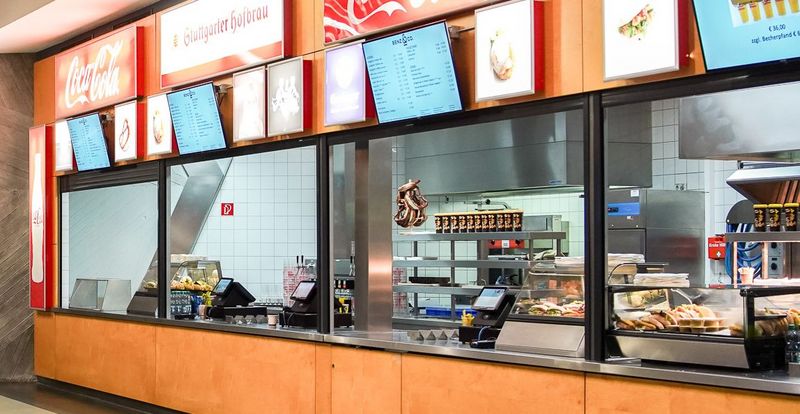 Warm hospitality and delicious food round off every event in the hall duo. If you want to quickly grab a cold beer, a bottle of mineral water or a snack to go, the snack bars in the foyer and in the corridors of the Porsche Arena and Schleyer Hall run by our caterer Marcel Benz are just the place for you.